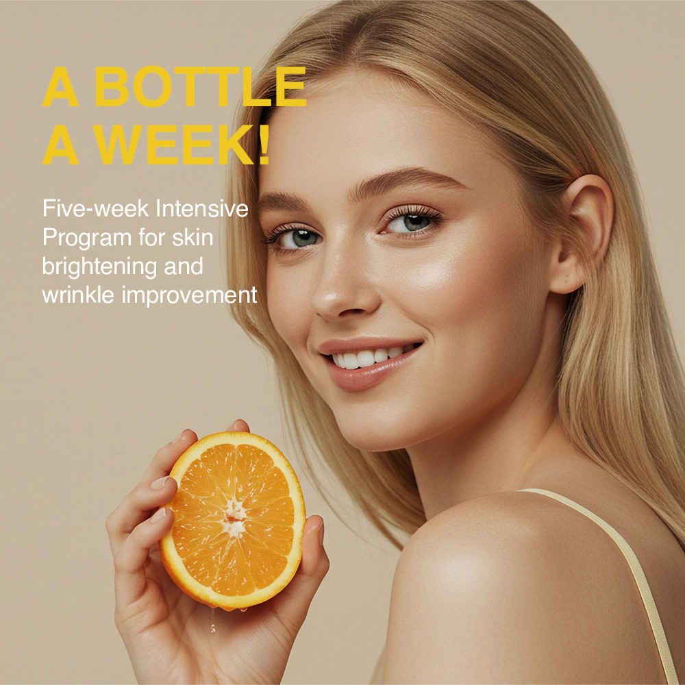 Visible changes in skin brightness, elasticity, and wrinkles were experienced within 2 to 4 weeks of use. For the best results, it is recommended to use one bottle per week consistently.