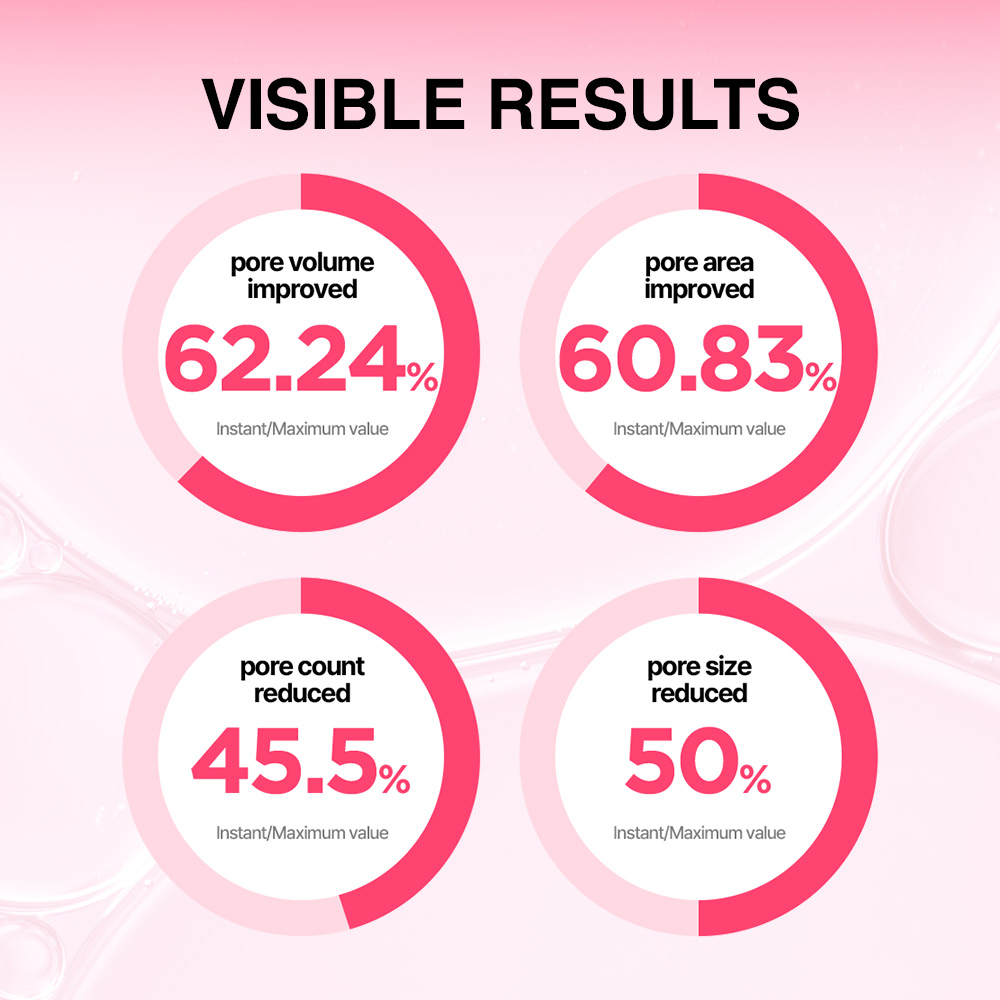 Clinically proven to improve four types of pores by up to 62.24%, helping the skin look clearer, smoother, and healthier.