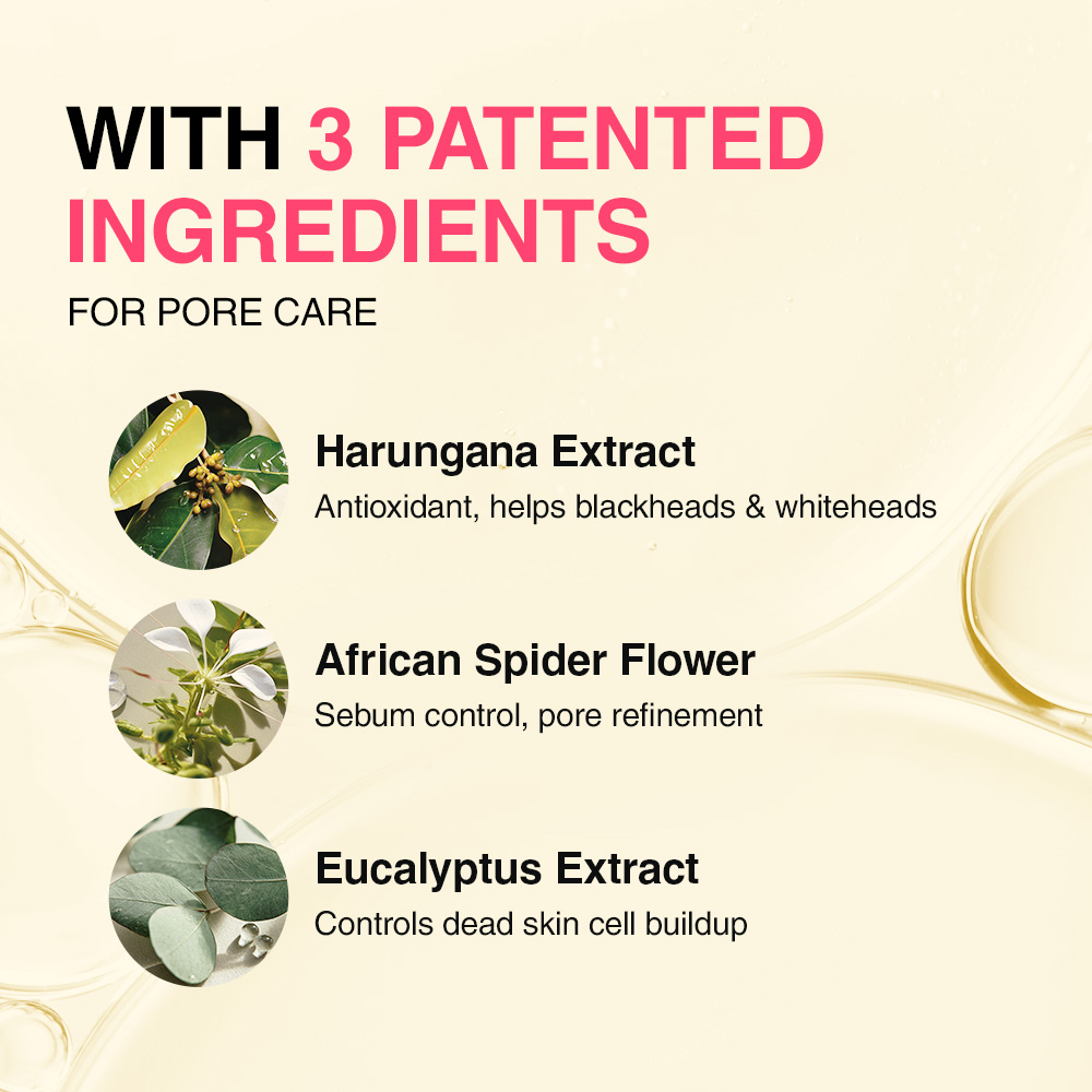 Natural ingredient for pores & sebum control African Spider Flower extract helps reduce greasy shine and leaves pores feeling clean and refined.