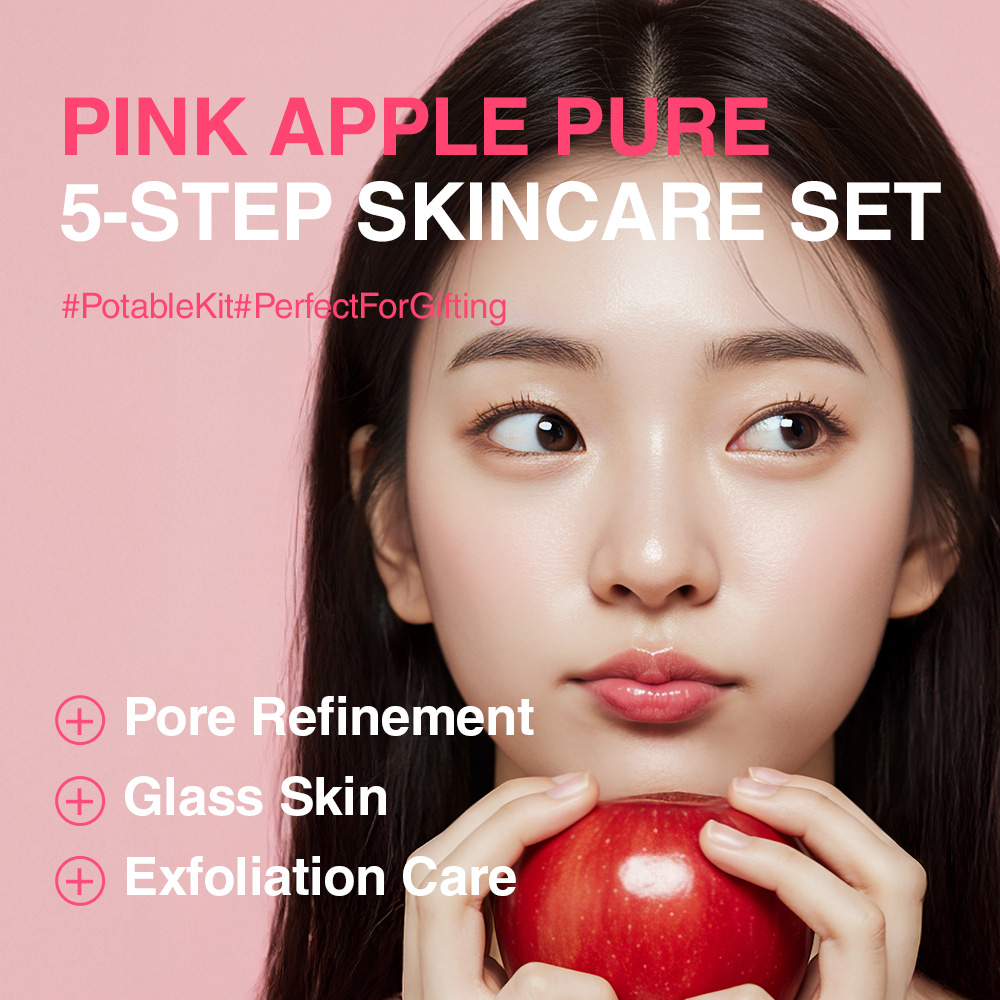 If you're worried about skin care while traveling, the Pink Apple Pure 5-Piece Kit is the perfect solution. First, it's available in travel-friendly sizes, making it easy to carry anywhere. You can easily complete your skincare routine with the 5-piece set that covers everything from cleansing to moisturizing. Infused with apple water and 3 patented pore-care ingredients, it smooths skin texture and gently addresses sebum and blackheads. Additionally, it's dermatologically tested for mildness, so it's safe for sensitive skin. Get ready to enjoy your trip without worrying about your skin!