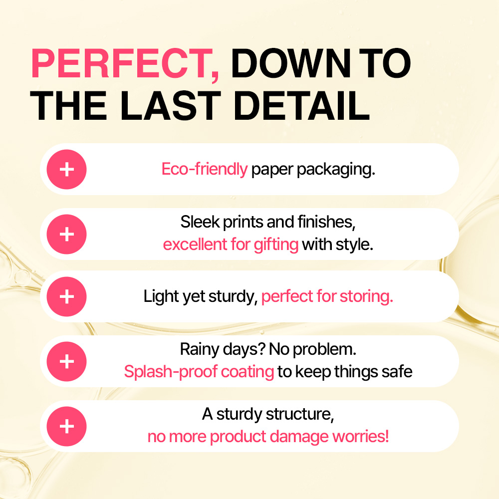 1. In case of having side effects such as red rash, swollenness, itching while using this cosmetic, or in case such symptoms appear by direct sunlight after using it, consult a dermatologist immediately. 2. Do not apply it on the part where you have a scar,eczema or dermatitis. 3. Precaution for treatment and storage 1) Keep it out of the reach of children 2) Avoid the place where the direct sunlight is.