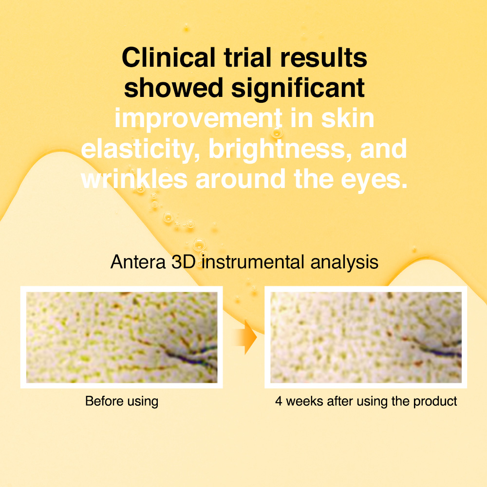 Clinical results after 4 weeks showed significant improvement in skin elasticity, brightness, and fine lines around the eyes.
