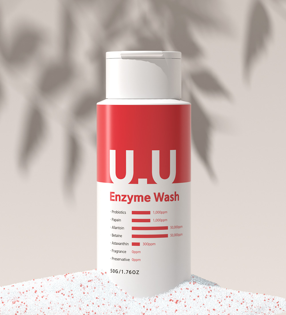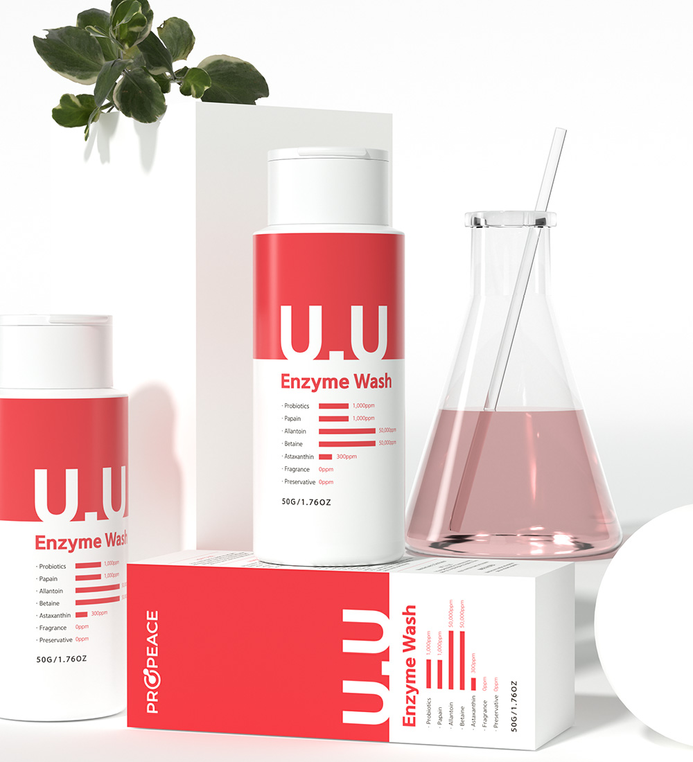 The Propease U.U Enzyme Wash, containing fermented probiotics, supplies beneficial probiotics to the skin, boosting its vitality.