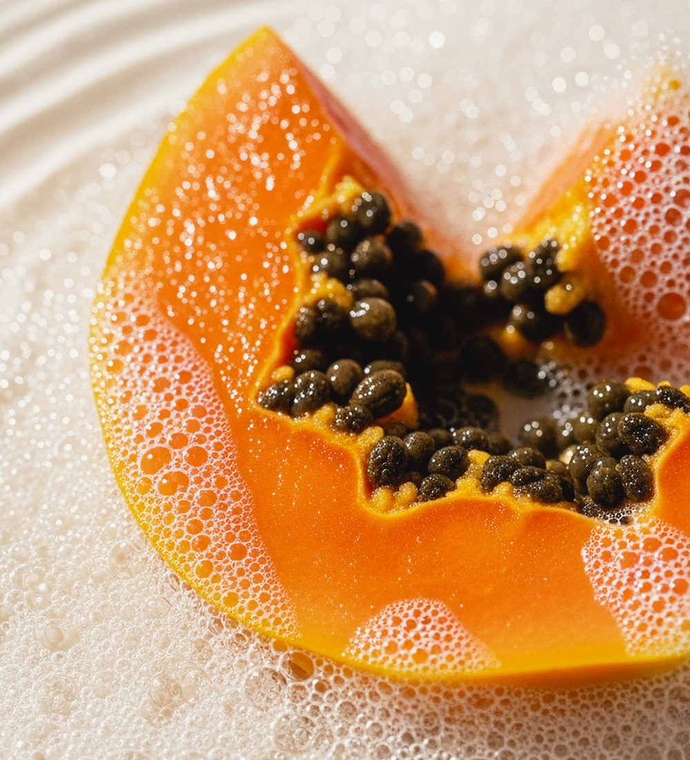 Papain enzyme gently removes dead skin cells without irritation, creating a smooth and clean skin texture, providing natural exfoliation care without burdening the skin.