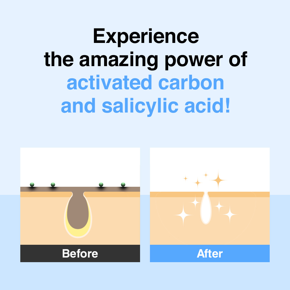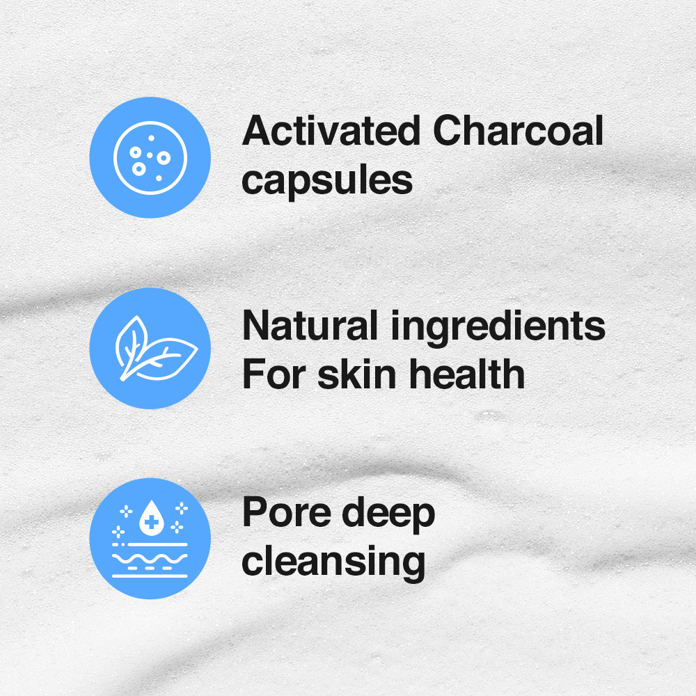 Activated charcoal capsules thoroughly absorb deep-seated impurities from the pores, providing a deep cleansing effect that purifies your skin. Salicylic acid and naturally derived ingredients exfoliate dead skin cells, leaving your skin smooth and clear, while soothing ingredients like aloe vera, kelp, and violet reduce irritation and keep your skin hydrated for a long time after cleansing.